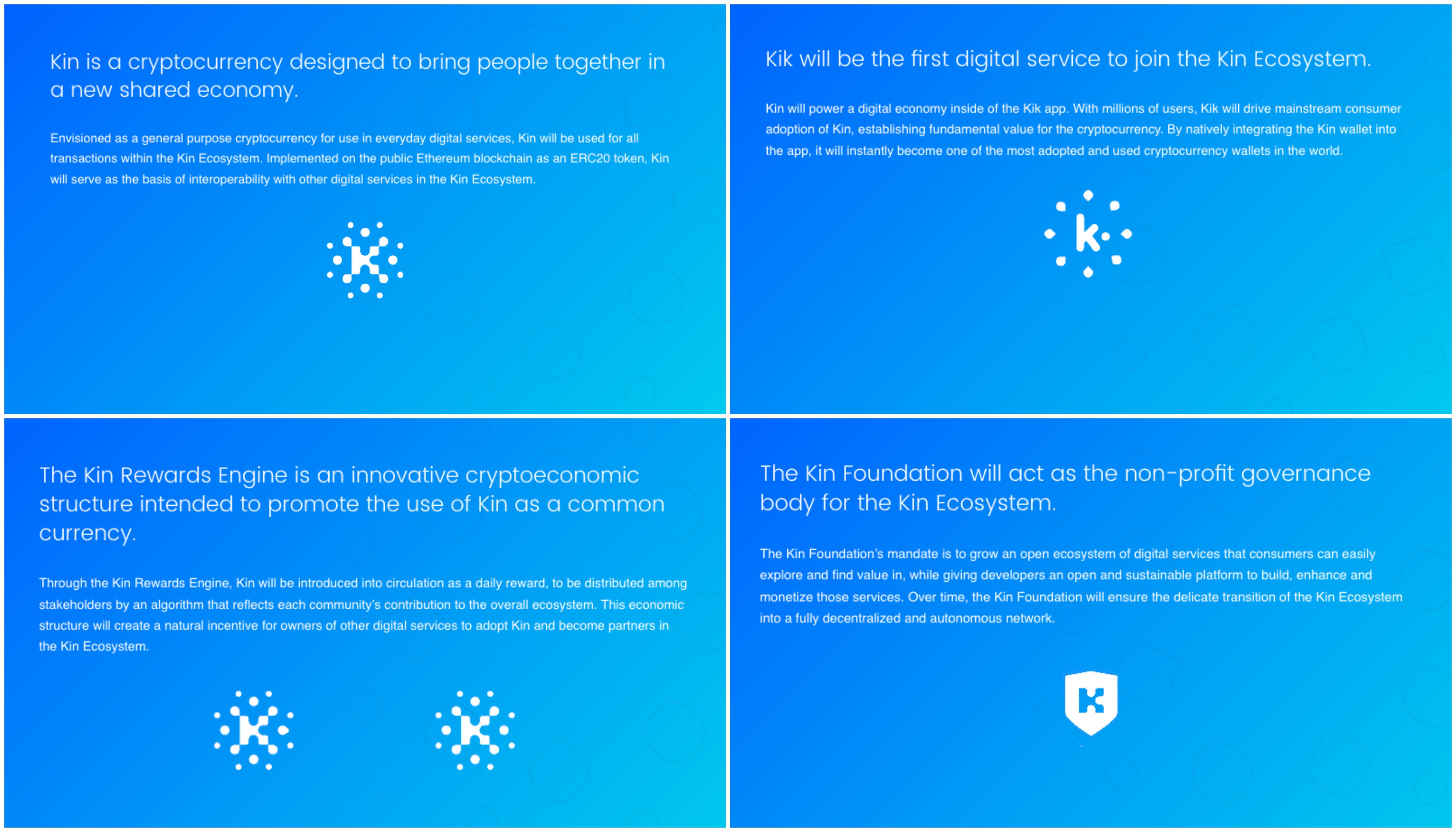 Kin will raise funds - in the form of Bitcoin and Ether that, of course, can be converted to fiat currency - and then attempt to build an ecosystem in which Kin's value will be created by Kik users as a means of exchange (imagine if "Likes" on Facebook/ Instagram/ Twitter became a commodity rather than an infinitely available expression of sentiment). Developers who build on the Kin blockchain and become part of the Kik ecosystem will receive Kin tokens as a reward, so the more people a developer brings to the party, so to speak, the more valuable their Kin tokens will become.